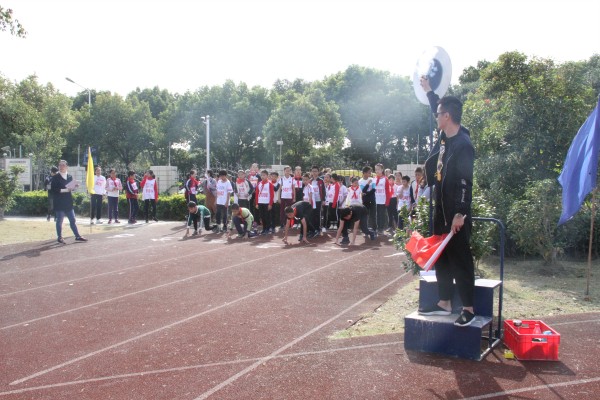 1019日,在和煦的秋风中,青浦区徐泾小学第42届校园田径运动会胜利召开。上午开幕式,彩旗猎猎,欢声阵阵,学校田径场上回荡着激昂而富有韵律的运动员进行曲。国旗队、会旗队、鲜花队、彩旗队及各班运动员的方阵和教师队伍排成整齐的队列,迈着雄健有力的步伐经过主席台接受检阅。尤其是五年级方队,全班学生都参加了大会检阅,各班精心组织,演绎精彩,赢得满场喝彩!在庄严的国歌声中,鲜艳的五星红旗冉冉升起。党支部书记沈老师致热情洋溢的开幕词,运动员代表庄严宣誓,在观赛学生的阵阵呐喊中,运动员投入了紧张激烈的比赛中。